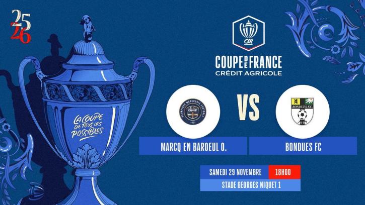 Le tirage au sort a désigné Marcq-en-Baroeul comme adversaire pour le match du samedi 29 novembre à 18h, avec en ligne de mire une qualification historique pour les 32ᵉ de finale, moment où entrent les clubs de Ligue 1.