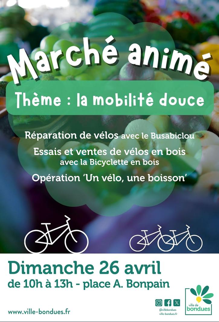 Le vélo sera le thème central du marché animé du 26 avril. De nombreux stands et animations sont prévus de 9h à 13h, sur la Place de l’Abbé Bonpain et le long de l’avenue du Coquinage avec des acteurs locaux, des associations spécialistes et la municipalité.