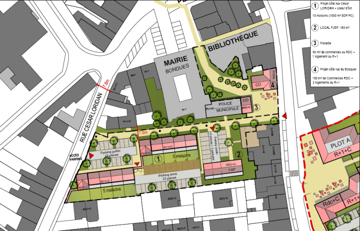 harmonieux, intégrant logements, commerces, services, un parc verdoyant et une nouvelle salle polyvalente. L’ensemble sera conçu dans le respect de l’identité de Bondues, fidèle à son esprit de “petite ville à la campagne”.