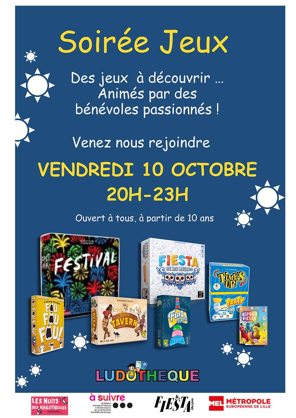 Les vendredis 10 octobre et 12 décembre de 20h à 23h